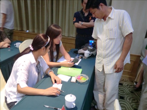 收款处的工作人员面对排队等待缴款的经销商,忙而不乱,认真细致的办好办清每一笔缴款。