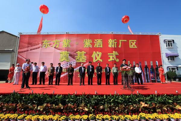 2011年10月18日,位于江苏省句容市茅山镇的句容九州桑果酒业有限公司举行了隆重的东方紫酒新厂区开工奠基仪式。全国人大常委,农业与农村工作副主任舒惠国,农业部原副部长洪绂曾, 句容市市委书记童国祥,市长尹卫东以及句容市和茅山镇有关领导参加此次活动并作了重要讲话。