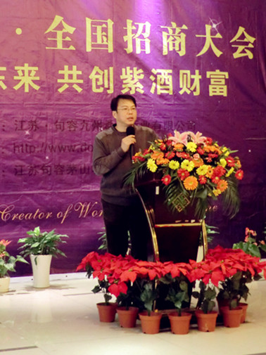 伴随着元旦的喜庆气氛20111231紫气东来 共创紫酒财富东方紫•2011年度第八届招商会,在江苏省句容曙光国际酒店成功举办。句容九州桑果酒业总裁陈总、中国农业大学教授博士生导师、中国葡萄酒酿造专家、东方紫酒研发中心主任黄卫东教授出席了本次会议。会议介绍了东方紫品牌的发展战略及远景规划、经销商政策以及公司酒庄用地的规划和设计以及系列紫酒产品的市场前景分析,并且黄卫东教授深度分析了东方紫酒的价值养生机理及与红酒相比的养生趋势。