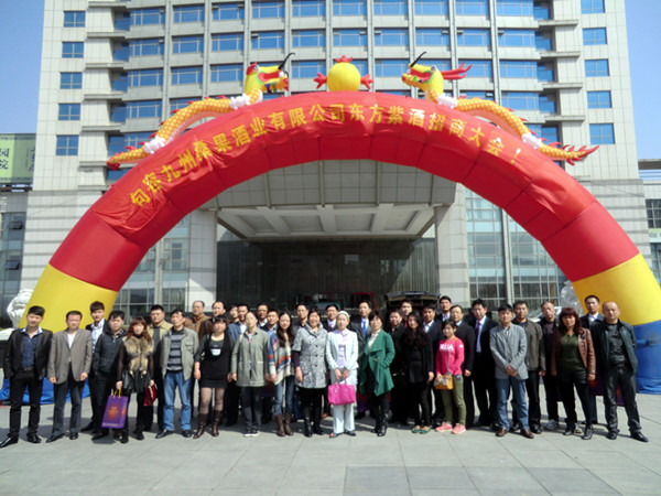 与会客商在旭日阳光下留影留念,美好的瞬间记录下的是紫酒开创者们喜悦的笑容。2012招商会成功举办。