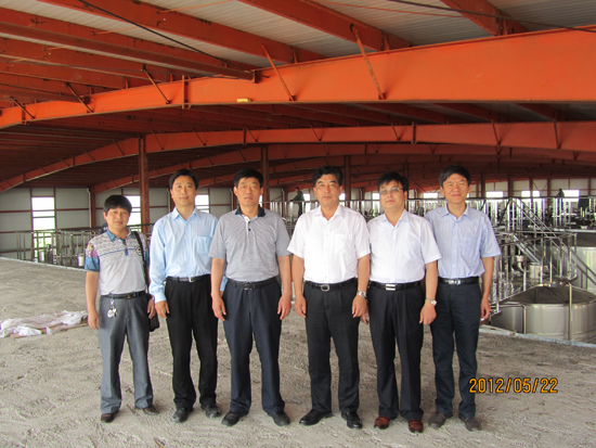 周春芳主任等领导和高董事长等人,登上了公司三层办公区,对于公司整个在建厂区进行了视察和了解,听取了情况介绍。了解到眼前这片储酒罐为国内最先进的生产设备,其中还有东方紫公司专有技术的生产设备。各位领导在建设中的东方紫厂区合影留念,以记录这具有历史意义的一刻。