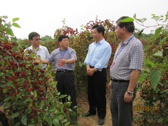 市人大常委会党组书记、常务副主任杨庆荣(左二),周春芳副主任(右一),高董事长,茅山镇金伟书记(左一),在东方紫产业园区视察高效产业发展情况。
