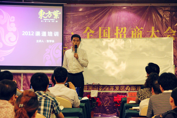 张总首先与到会的代理商朋友们分享了对于公司和代理商伙伴间的关系,通过风趣幽默的话语,简单明了的亲身经历的案例分享,很快的唤起了代理商伙伴的共鸣,培训现场掌声阵阵。互动的问题,切身的经历让代理商伙伴们感觉到彼此的距离更近了。