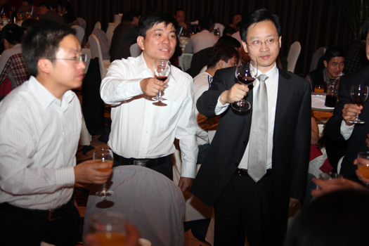 [句容市委书记、市长尹卫东 与参会嘉宾共饮东方紫酒]