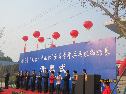 2012年“句容·茅山杯”全国青年乒乓球锦标赛将于11月1日-7日在句容举行。这也是继举办2010年全国历史文化名城乒乓球赛、2011年第七届全国城市运动会乒乓球预赛后,句容连续第三年承办全国性乒乓大赛。国家体育总局乒羽中心主任助理陆元盛,镇江及江苏省领导,句容市市委书记、市长尹卫东,市委常委宣传部长吕朝霞,副市长王华等领导同志出席开幕式,市委常委常务副市长黄万荣主持开幕式。