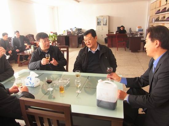 金伟书记和高董事长为许文市长介绍了东方紫酒厂建设情况,以及东方紫种植园区桑椹产业发展情况。许文市长一行还试尝了东方紫厂区酿制的新型紫酒产品。 许文市长鼓励东方紫要做出特色,做大做强桑椹产业,带动周边农户致富。