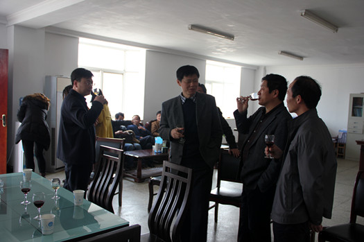 到厂各级领导品鉴东方紫新厂区酿造的紫酒