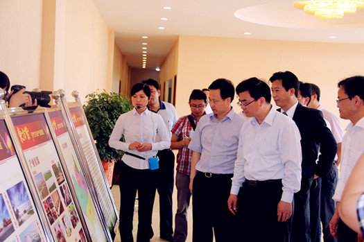 12日上午,杨省世、李雪峰等领导同志,在市领导尹卫东、许文、王吉武、潘群陪同下来到“东方紫产业园区”。在句容市东方紫酒业有限公司,听取了茅山镇党委书记刘冬友、镇长张晶,以及公司董事长高董的关于园区情况介绍。在