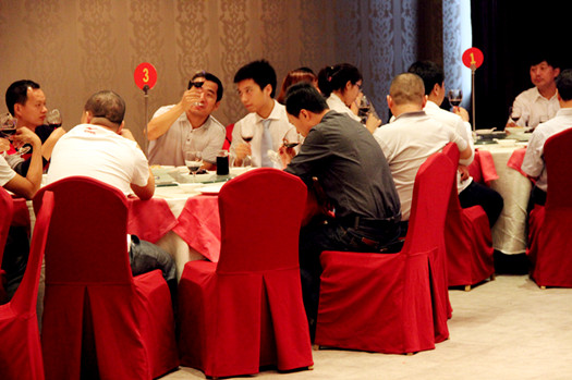 在品鉴晚宴上,与会嘉宾在主持人的导引下,品鉴东方紫酒。