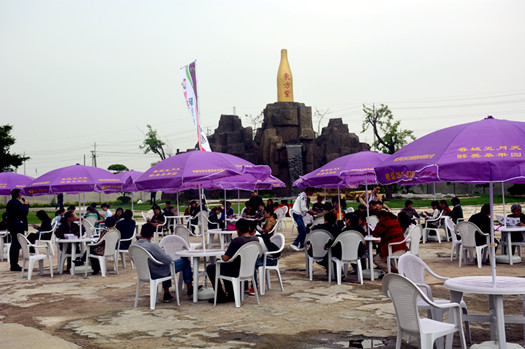 参加桑果节的游客们在厂区小憩,并品尝东方紫·紫酒