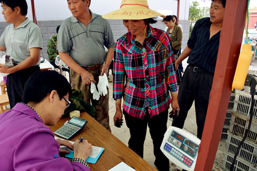收购区,果农们秩序井然在过磅称重。