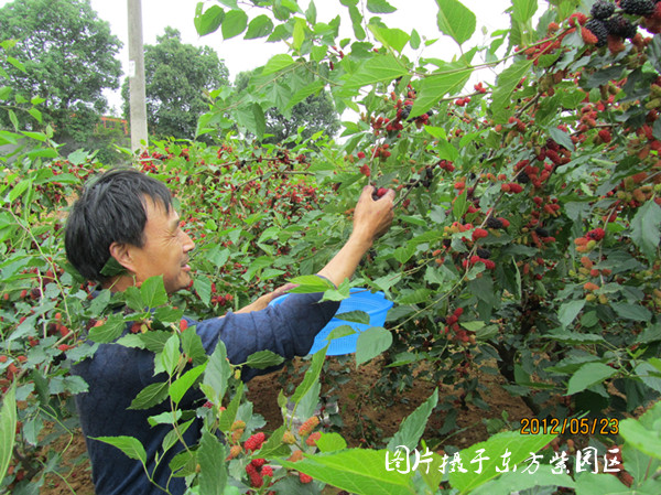 随着他们一次次的放入,篮中的桑椹也一层层的多了起来。桑椹装满了那小小的篮子,农户会将桑椹放入竹筐中,然后继续采摘着......