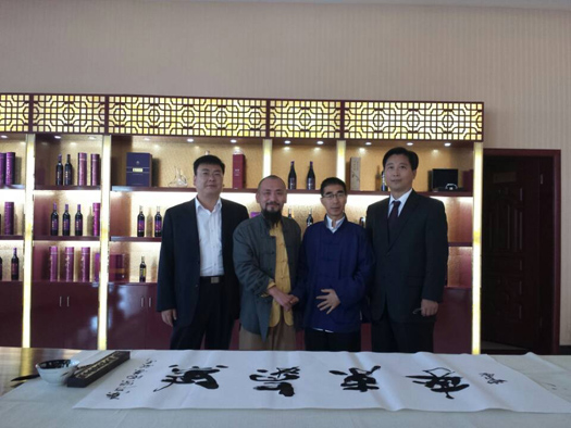著名书法家,画家,公益慈善家,《中华善报》总编,南京云谷书画院副院长,国学大师无墨先生,中国道教养生协会王成亚会长一行于4月23日莅临东方紫酒业句容茅山生产基地参观指导,无墨大师现场即兴题写”紫气东来”作品相赠。公司董事长高先生,总裁陈女士陪同参观。