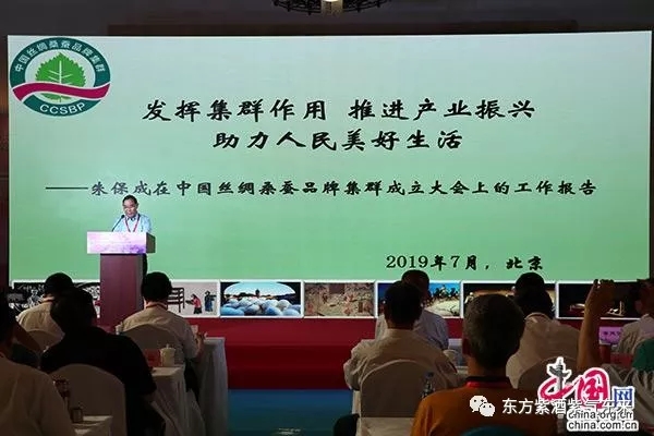 中国丝绸桑蚕品牌集群主席、原农业部党组成员、中央纪委驻原农业部纪检组组长朱保成代表品牌集群向大会做工作报告