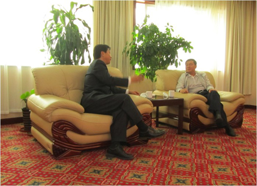 2011年8月28日,句容九州桑果酒业公司董事长高庆国博士 与伊犁巩留县委书记李世民同志交流,介绍在当地投资的皇地庄园及紫酒项目情况,双方进行了愉快的交流。